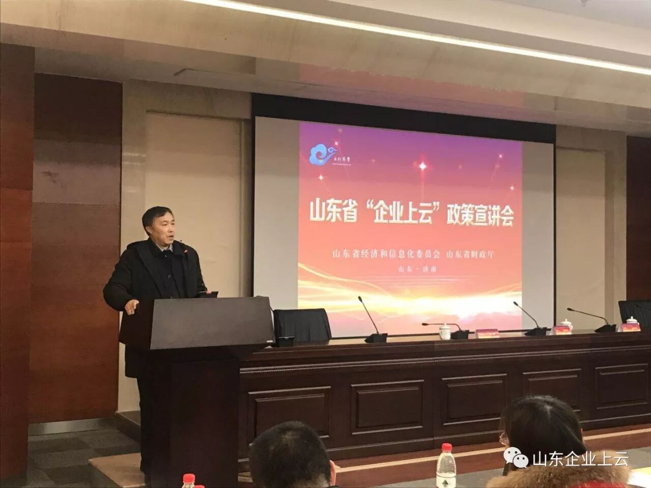 为落实《山东省实行“云服务券”财政补贴助推“企业上云”实施方案(2017-2020年)》(鲁经信信推〔2017〕417号)、《山东省“云服务券”财政奖补实施细则的通知》(鲁财工〔2017〕42号)文件精神,做好平台在线服务工作,推进企业上云进程,12月28日,由山东省经济和信息化委员会与山东省财政厅联合主办的“企业上云”政策宣讲会在济南召开。山东省经济和信息化委员会信息化推进处处长李永华,省财政厅工业贸易处副处长哈立东,山东省企业上云服务联盟秘书长、山东省电子信息产品检验院院长王锋出席本次会议。