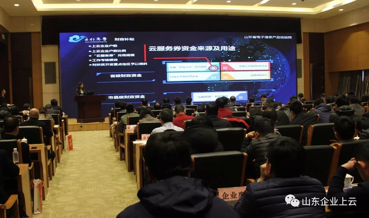 省两化融合评测中心石秀芳主任对实行“云服务券”助推企业上云的方案和使用细则进行了解读。淄博联通、移动、电信以及山东工业云、华为、浪潮、好品山东等7家云服务商分别介绍了自己的云服务方案,就如何帮助企业快速上云进行了案例分享。